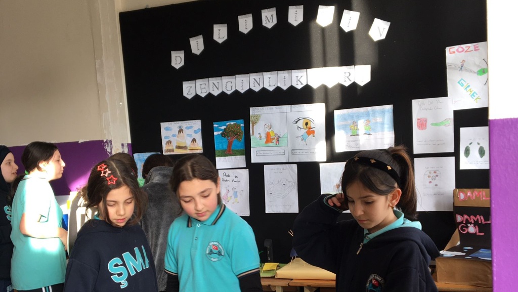 Dilimizin Zenginlikleri projesi kapsamında okulumuzda yapılan söz varlığını zenginleştirme çalışmaları ile öğrencilerimizin dilimizin zenginliklerini tanımasını, kültür taşıyıcısı olan sözcüklerimizle buluşmasını, buna bağlı olarak da dili iyi kullanmasını ve düşünce dünyasını geiştirmesini amaçlanmıştır. Atasözü ve deyimlerin canlandırılması, resmedilmesi; deyim, atasözü ve maketleriyle okulumuzun öğrencilerine sergilenmştir. Projede emeği geçen tüm öğrenci ve öğretmenlerimize teşekkür ederiz.